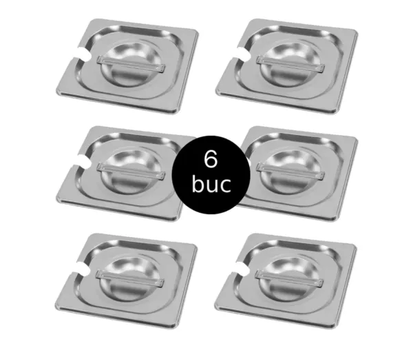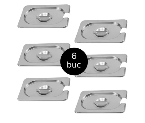 Capac GN 1/6 inox, 17,6×16,2 cm, cu decupaj pentru polonic, set 6 bucati
