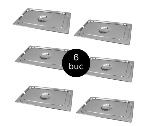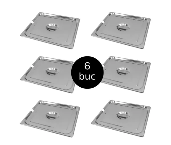 Capac GN 1/1 inox, 53×32,5 cm, cu decupaj pentru polonic, set 6 bucati