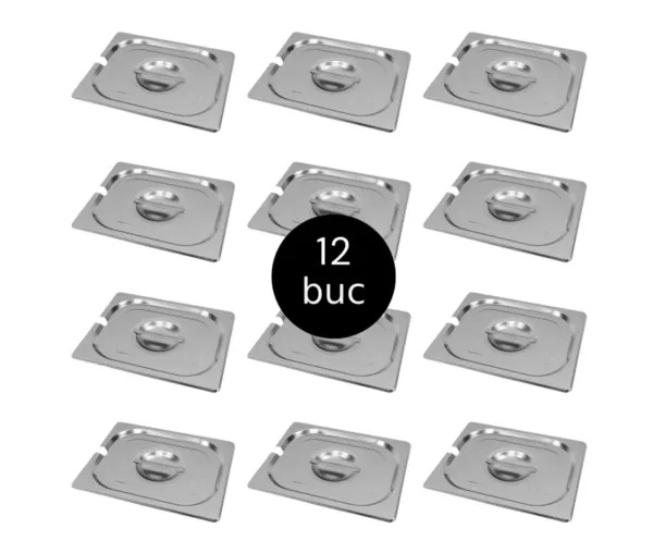 Capac GN 1/2 inox, 32,5×26,5 cm, cu decupaj pentru polonic, set 12 bucati