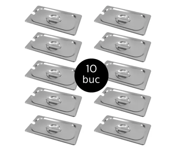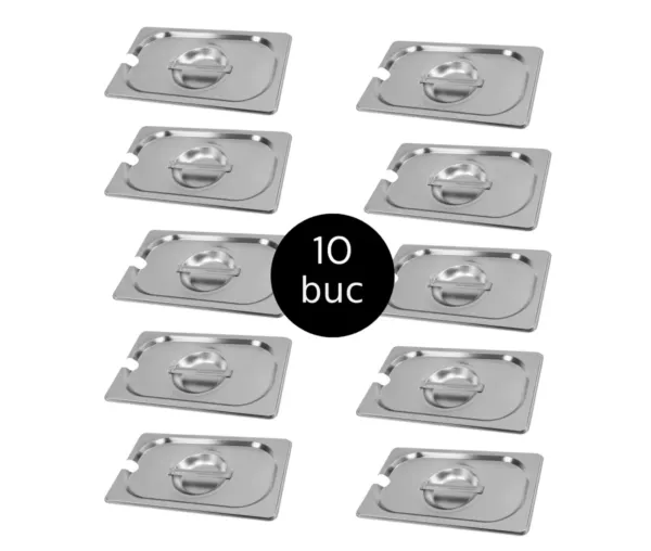 Capac GN 1/4 inox, 26,5×16,2 cm, cu decupaj pentru polonic, set 10 bucati