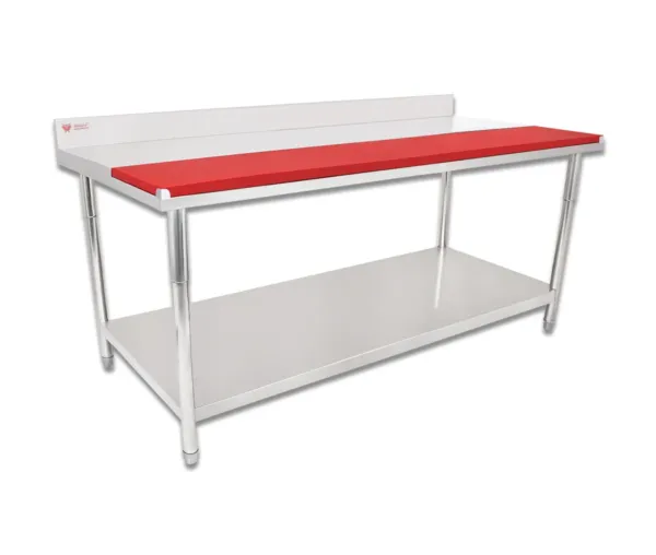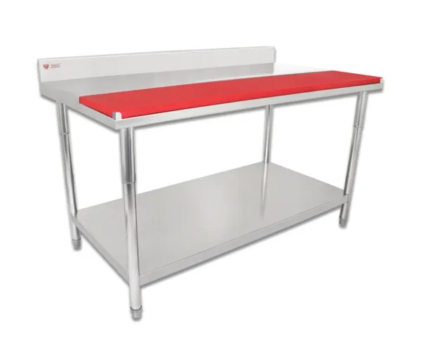 Masa inox cu blat polietilena 1500x800x950 mm, cu spatar si polita, dezasamblata