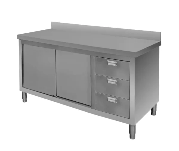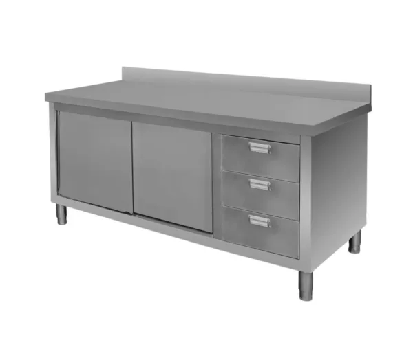Masa inox perete sudata cu dulap si 3 sertare 180x60x85 cm pentru bucatarii profesionale