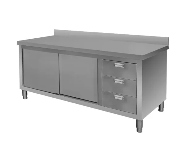 Masa inox perete sudata cu dulap si 3 sertare 180x70x85 cm pentru bucatarii profesionale