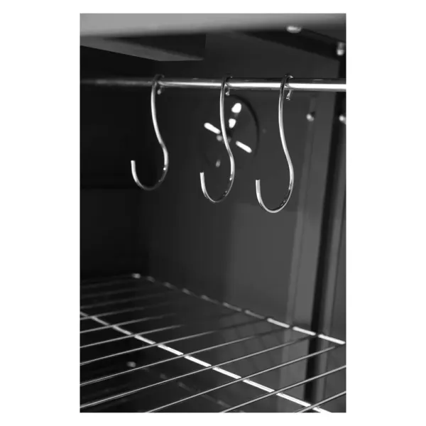 Aceasta afumatoare profesionala din inox este echipata cu termostat si termometru integrat, permitand controlul precis al temperaturii pentru rezultate constante. Designul compact si functional, cu 3 rafturi si 3 agatatoare pentru carne, o face ideala pentru prepararea unei game variate de alimente – de la mezeluri traditionale pana la peste afumat si legume.