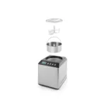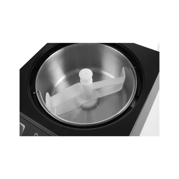 Acest aparat inghetata profesional nu necesită răcirea prealabilă a ingredientelor, economisind timp prețios în procesul de preparare. Ecranul digital iluminat îți oferă informații clare despre timpul de lucru și temperatura de îngheț, iar funcția de răcire timp de două ore păstrează consistența produsului chiar și după ce procesul de preparare este finalizat. De asemenea, paleta de amestecare din polipropilenă este ușor de montat, iar capacul transparent cu sistem de închidere „Twist-Lock” asigură siguranța și confortul utilizatorului.
