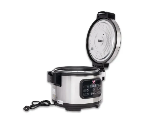 Cu o capacitate de pana la 11 litri si o functionalitate automata ce permite fierberea rapida a orezului, acest aparat de facut orez profesional asigura eficienta maxima in preparare, economisind timp si resurse. Fiecare ciclu de gatire este controlat automat, eliminand riscul de ardere si garantand rezultate omogene de fiecare data. In plus, modul de mentinere automata a temperaturii pastreaza orezul cald si gata de servire chiar si in perioadele de varf ale activitatii.