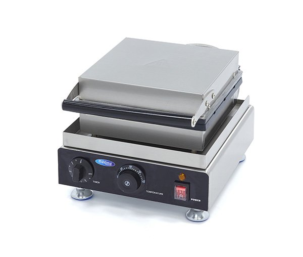 Aparatul este proiectat pentru a face fata cerintelor intense din bucatariile profesionale, oferind o putere de 1750 W care asigura incalzire rapida si coacere uniforma. Termostatul reglabil intre 50 °C si 300 °C permite adaptarea procesului in functie de reteta si textura dorita a waffelor. Temporizatorul integrat ofera control complet asupra duratei de coacere, prevenind arderea sau coacerea insuficienta. Constructia solida din otel inoxidabil si stratul anti-alunecare al placii de coacere asigura un echipament durabil si usor de intretinut, perfect pentru orice bucatarie profesionala care doreste un aparat de facut waffe de calitate superioara