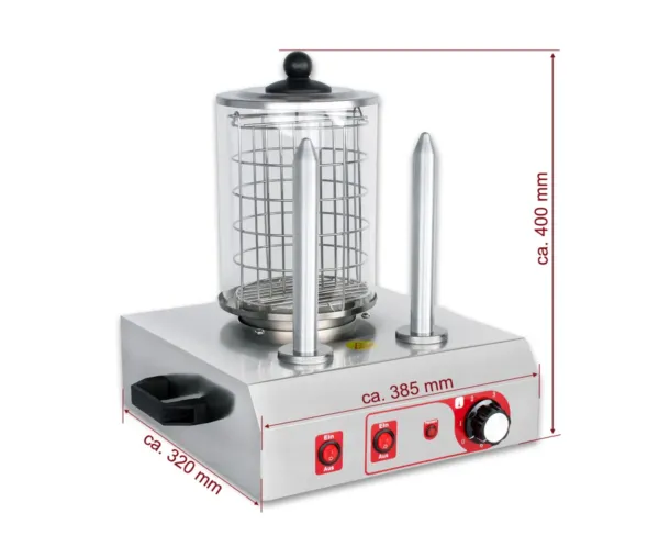 Aparatul de hotdog cu 2 tepuse si vas de sticla este creat pentru a optimiza timpul de servire si a imbunatati calitatea preparatelor. Prin utilizarea sa, se obtine o incalzire uniforma atat pentru crenvursti, cat si pentru chifle, ceea ce contribuie la consistenta gustului si satisfactia clientilor. Acest aparat de facut hot dog este ideal in spatiile comerciale unde viteza de servire si prezentarea produsului sunt esentiale