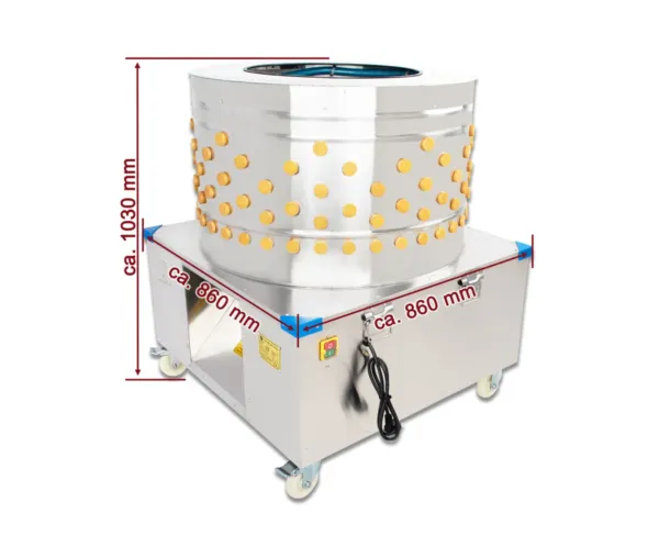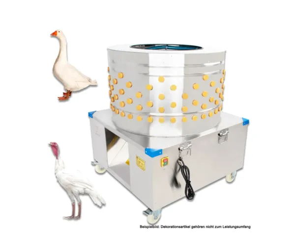 - Cu o putere de 2200 W și o capacitate de procesare de până la 500 de păsări pe oră, acest deplumator asigură o prelucrare rapidă și eficientă, reducând timpul necesar pentru îndepărtarea penelor.
