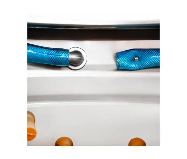 - De asemenea, echipamentul este prevăzut cu un jgheab de evacuare a deșeurilor, care facilitează îndepărtarea eficientă a penelor și a surplusului de apă, menținând zona de lucru curată și funcțională.