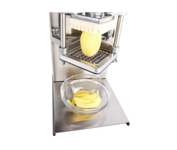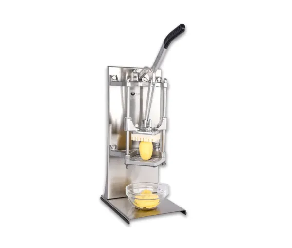 Acest echipament taiere cartofi profesional este proiectat pentru a oferi durabilitate si stabilitate superioara. Cadrul metalic din inox si elementele rezistente la uzura, precum bratul din aluminiu si cuțitul de taiere din otel inoxidabil, permit realizarea de taieturi uniforme de 8×8 mm, ideale pentru cartofi pai clasici.