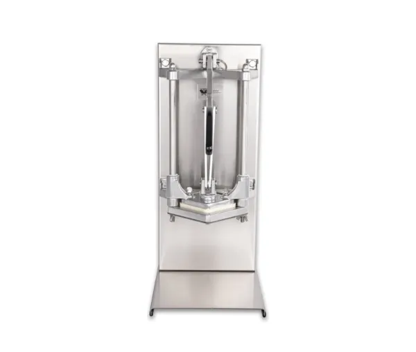 Placa de presiune din plastic dur asigura o distributie uniforma a fortei, prevenind deteriorarea legumelor in timpul procesului. Dispozitivul poate fi montat atat pe masa, cat si pe perete, oferind flexibilitate si adaptabilitate la spatiile disponibile in bucatariile comerciale.