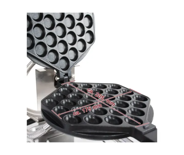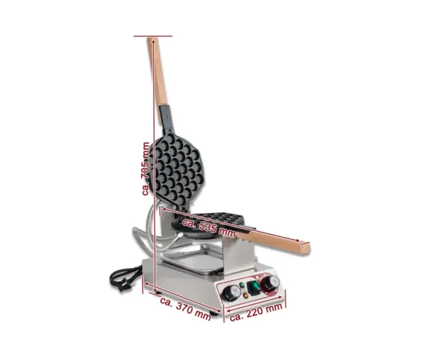 Acest aparat de facut waffe este conceput pentru realizarea rapida a waffle-urilor tip bubble, extrem de apreciate pentru aspectul lor unic si versatilitatea in servire.