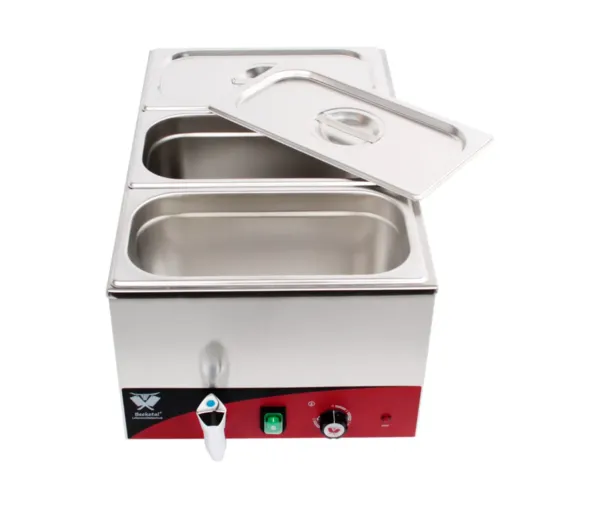 Adesea numit, baia de aburi sau boilerul dublu, un Bain Marie este de obicei un echipament mare, compatibil cu normele gastronomice si este folosit ca parte a unui bufet cu autoservire sau a unei zone cu servire asistata.