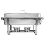 Construit integral din inox alimentar, acest echipament garanteaza durabilitate in conditii intense de utilizare, fiind usor de igienizat si rezistent la coroziune. Capacitatea de 9 litri este perfecta pentru volume mari de mancare, iar capacul inclus protejeaza preparatele de contaminare si pierderi de temperatura, contribuind la mentinerea calitatii produselor servite.
