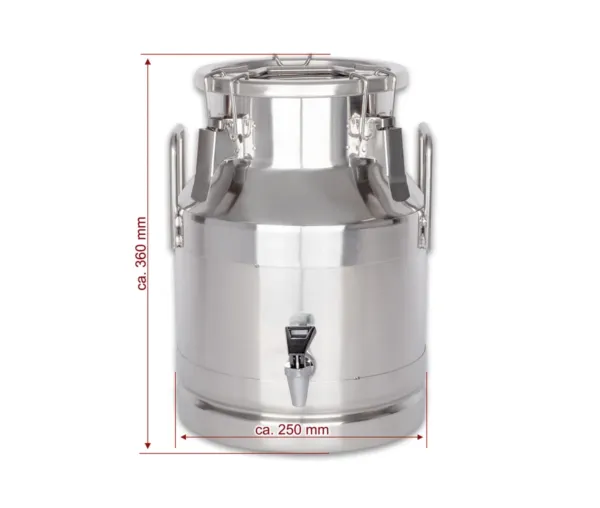 Bidon inox lapte, miere, ulei 10 litri, diam 245x350mm, capac etans si robinet, BMK-10A