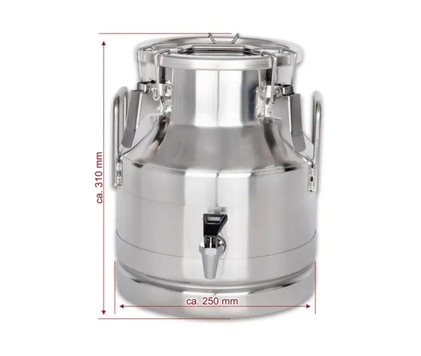 Bidon inox lapte, miere, ulei 8 litri, diam 320x350mm, capac etans si robinet, BMK-8A