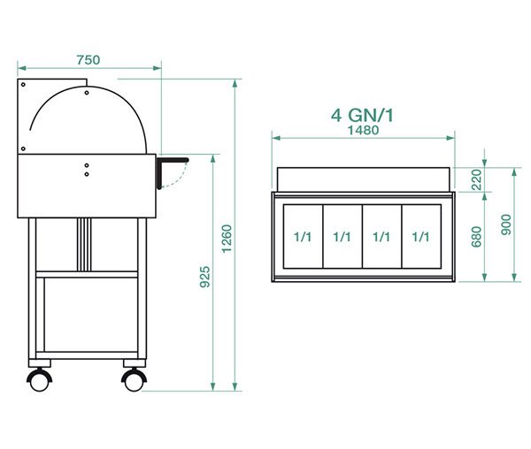 - Capacitate generoasă: Bufetul este proiectat să găzduiască până la 4 tăvi GN 1/1 cu adâncimea de 150 mm, oferind suficient spațiu pentru preparate diverse. Acest lucru îl face ideal pentru autoservire sau bufete de tip suedez, unde varietatea este importantă.