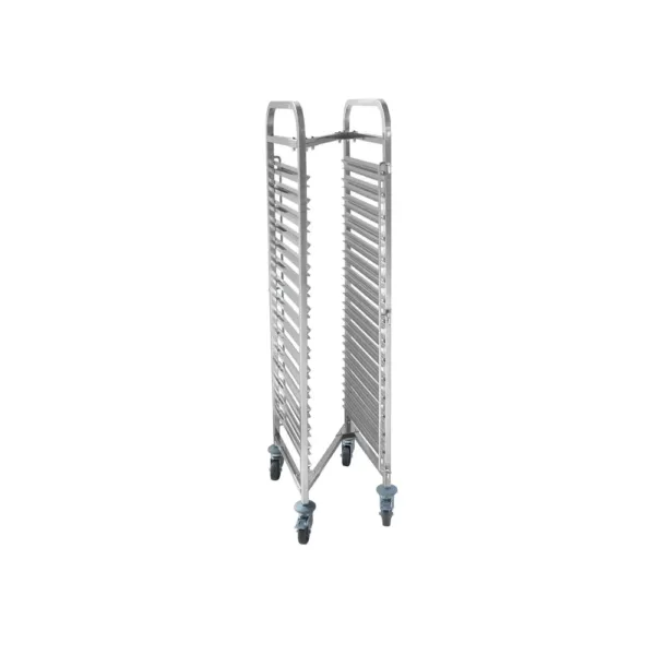 Cu o capacitate de 15 tavi GN 1/1 si un design vertical care economiseste spatiu, acest carucior tavi este conceput pentru a eficientiza fluxul de lucru. Sistemul de blocare a tavilor in ambele parti contribuie la o utilizare stabila si sigura, indiferent de mediul de lucru. Este ideal pentru manipularea tavilor incarcate cu produse alimentare calde sau reci, oferind flexibilitate si control in fiecare etapa a activitatii.