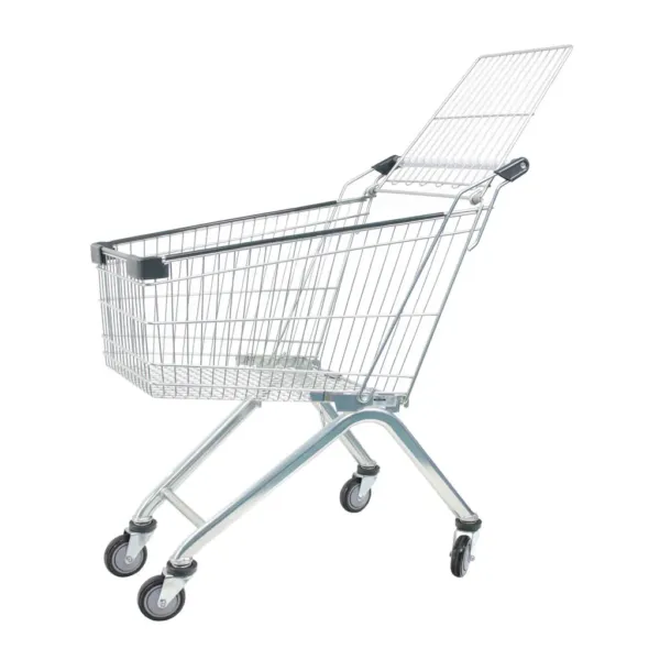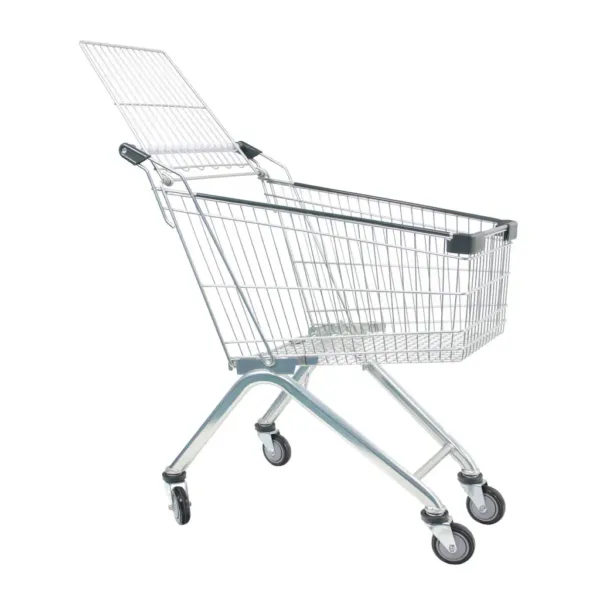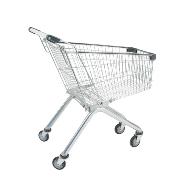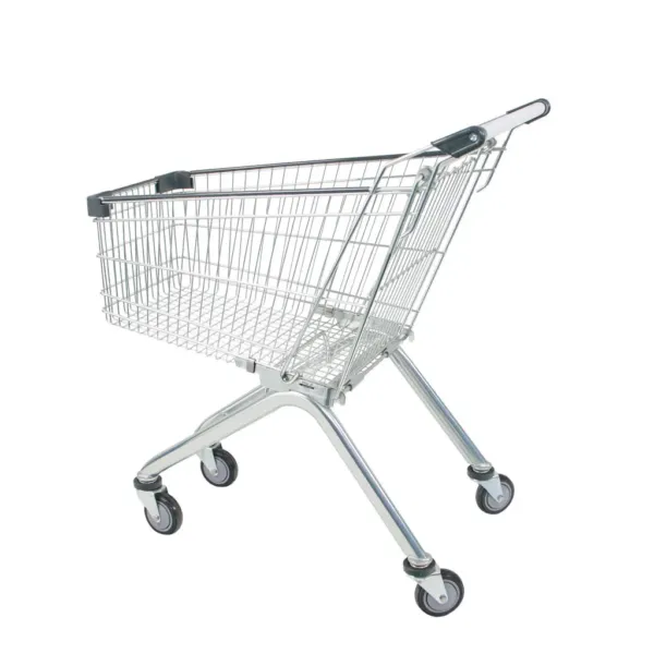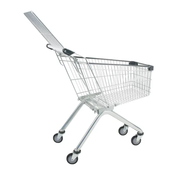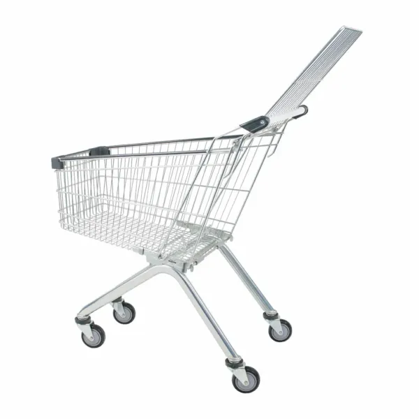 Carucior de cumparaturi inox 95L – soluția ideală pentru magazine compacte