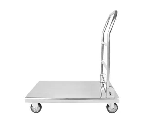 Fabricat integral din oțel inoxidabil de calitate superioară, acest cărucior este proiectat să reziste în timp chiar și în medii cu umiditate crescută sau expuse la substanțe chimice. Datorită materialului, este ușor de curățat și întreținut, menținând astfel igiena esențială în industria HoReCa. Fiind rezistent la coroziune, este ideal pentru uzul frecvent în restaurante, hoteluri, depozite și chiar spitale.