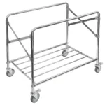 Acest carucior pentru rufe este echipat cu un cadru solid din inox și patru roți pivotante, dintre care două sunt dotate cu frâne de siguranță. Acestea asigură deplasare lină și silențioasă, facilitând transportul chiar și în spații restrânse.