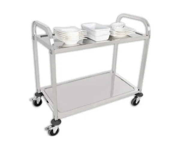 Acest carucior servire inox cu 2 polițe și cadru pătrat este un produs esențial pentru unitățile profesionale HoReCa, fiind proiectat pentru a asigura un transport eficient și sigur în bucătării profesionale, restaurante, cafenele, baruri, patiserii și alte locații comerciale. Cu o structură fabricată din oțel inoxidabil AISI 201, acest carucior de servire este extrem de rezistent la coroziune și ușor de curățat, fiind ideal pentru mediile cu cerințe stricte de igienă și durabilitate.