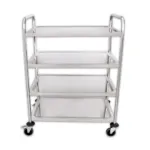 Acest carucior servire inox cu 4 polite este ideal pentru orice afacere din domeniul HoReCa care necesită un echipament fiabil și eficient pentru transportul alimentelor și echipamentelor. Designul funcțional și durabilitatea produsului asigură performanță și igienă în utilizarea zilnică, fiind o investiție excelentă pentru eficiența și productivitatea oricărei unități profesionale.
