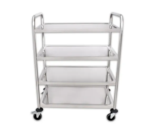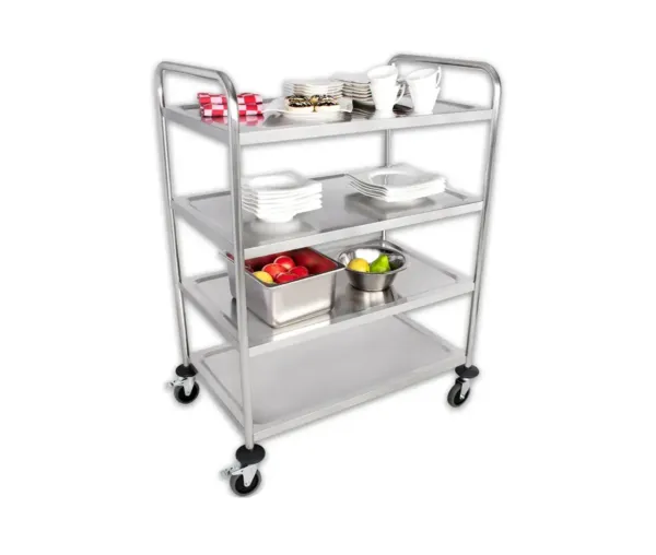 Acest carucior servire inox cu 4 polite este conceput special pentru mediile profesionale HoReCa, oferind o soluție eficientă și durabilă pentru transportul alimentelor și echipamentelor necesare în bucătării profesionale, restaurante, cafenele, pizzerii, fast-food-uri, bistrouri, baruri, terase, unități de catering, food trucks, carmangerii, abatoare și multe alte locații. Cu un design robust și ergonomic, acest carucior de servire garantează stabilitate, igienă și eficiență în utilizare.