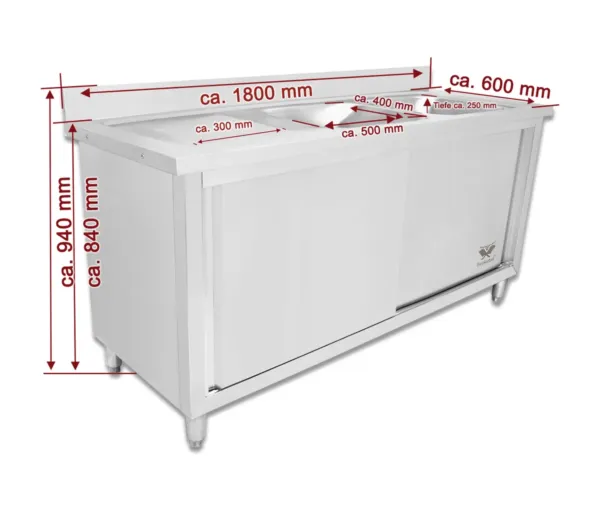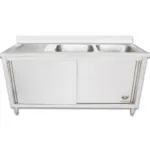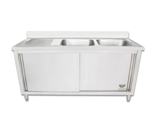 Chiuveta inox cu dulap, GSB180-Duo, 2 cuve partea dreapta, 1800x600x940mm, picioare reglabile