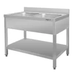 Chiuveta profesionala este dotata cu picioare reglabile, care permit stabilizarea pe suprafete inegale, iar inaltimea optima asigura un confort sporit pentru personalul din bucatarie. Rantul inalt previne patrunderea apei in spatele chiuvetei, mentinand curatenia si igiena. Constructia robusta din inox face ca aceasta chiuveta sa fie rezistenta la uzura intensa, perfecta pentru utilizarea zilnica in unitati gastronomice cu volum mare de lucru.