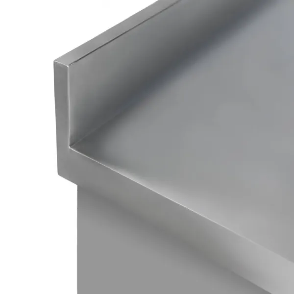 Chiuveta este prevazuta cu picioare reglabile, permitand stabilizarea pe suprafete inegale, iar inaltimea optima asigura confort personalului. Rantul inalt protejeaza peretele in spatele chiuvetei, mentinand standardele ridicate de igiena. Constructia robusta din inox ofera rezistenta la uzura zilnica si la coroziune, fiind ideala pentru utilizarea intensa din bucatariile profesionale.