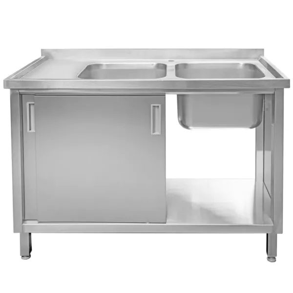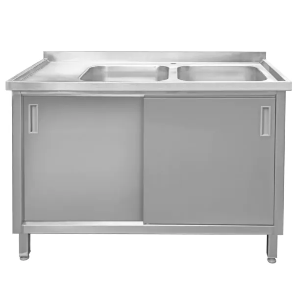 Chiuveta inox sudata 2 cuve cu dulap – solutie profesionala pentru bucatarii intensive