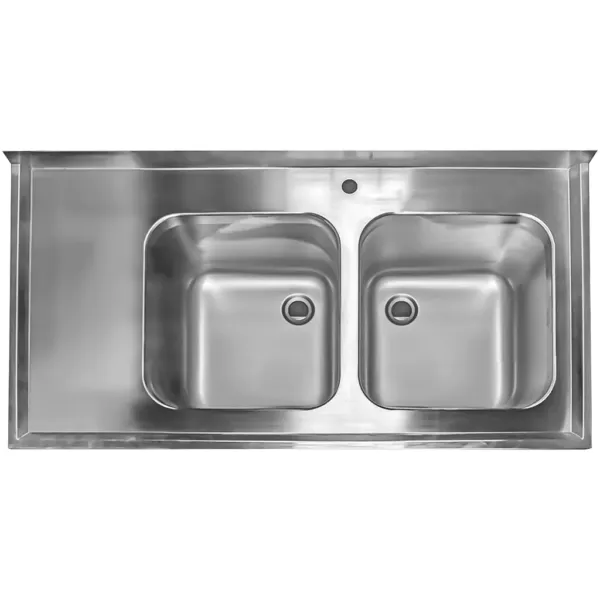 Parte din gama de mobilier din inox pentru uz profesional, chiuveta inox sudata 2 cuve cu dulap 120x60x85 cm reprezinta o alegere ideala pentru unitatile HoReCa care necesita igiena ridicata si eficienta maxima in spatiile de lucru. Construita integral din inox alimentar AISI 441, aceasta chiuveta inox 2 cuve profesionala ofera o rezistenta excelenta la coroziune, umezeala si impact mecanic, fiind adaptata mediilor cu utilizare intensa, precum restaurante, laboratoare de cofetarie, bucatarii de cantina sau linii de productie alimentara.