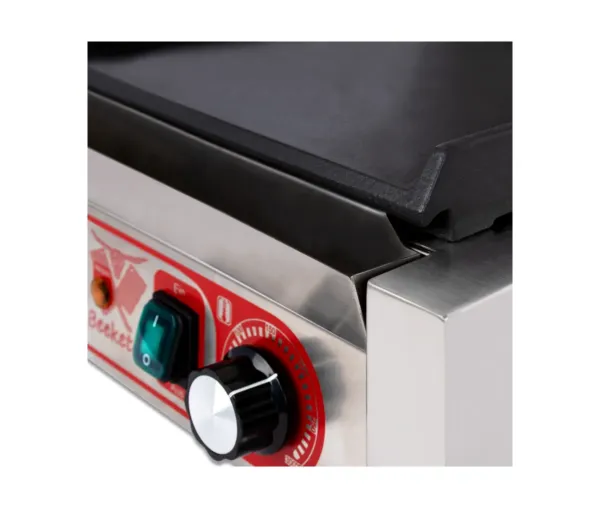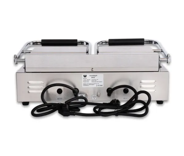 • Funcționalități: Tavă pentru grăsime, panouri laterale, termostate reglabile independent, lumini de avertizare