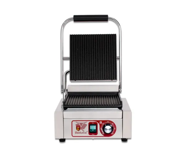 Contact grill panini simplu cu placi striate face parte din gama de echipamente profesionale pentru restaurante, fast-food și cafenele, fiind ideal pentru pregătirea rapidă și uniformă a panini-urilor, sandwich-urilor și altor preparate grill. Acest aparat combină performanța și durabilitatea, fiind indispensabil în orice unitate de alimentatie publica.