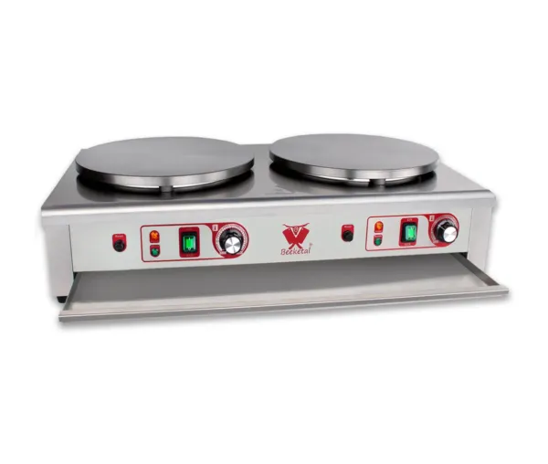 Perfect pentru restaurante, cafenele, gelaterii sau tarabe la targuri si festivaluri, aparatul clatite profesional BC40-2 garanteaza performanta constanta, control precis si productivitate ridicata, satisfacand cerintele oricarui profesionist din domeniul alimentar.