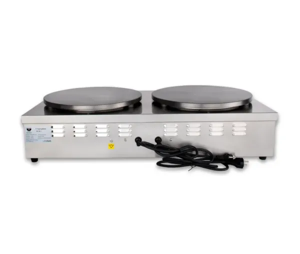 Doua plite de 400 mm optimizeaza spatiul de lucru, permitand prepararea mai multor clatite simultan. Distribuitorul de aluat inclus creste viteza de productie si asigura consistenta fiecarei clatite servite.