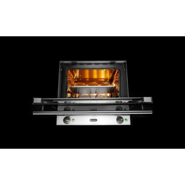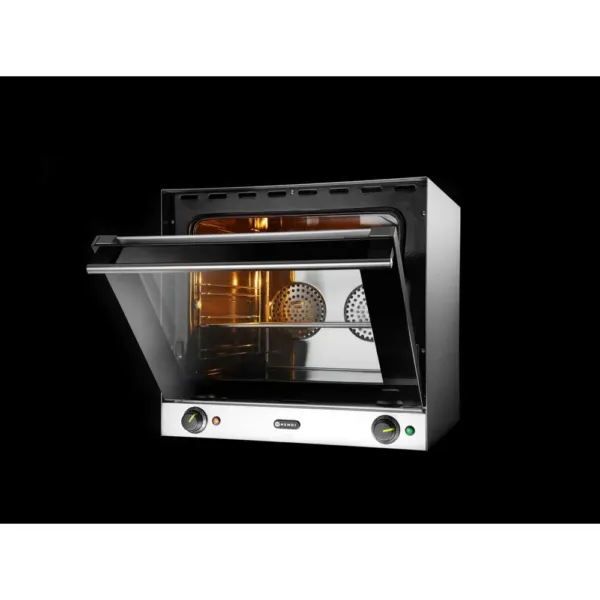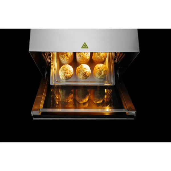 Acest cuptor profesional oferă o utilizare simplă și sigură, datorită panoului de comandă intuitiv, ușii cu geam termorezistent și funcției de iluminare internă care permite supravegherea constantă a procesului de gătire. Funcția de convecție cu două ventilatoare asigură o distribuție uniformă a căldurii, reducând timpul de gătire cu aproximativ 25% comparativ cu cuptoarele tradiționale. În plus, timerul integrat oferă control precis, prevenind supraîncălzirea și economisind energie.