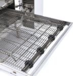 Construit din oțel inoxidabil, cuptorul rezistă la temperaturi ridicate și utilizare intensă zilnică, fiind ușor de curățat. Exteriorul poate fi șters rapid cu o cârpă umedă și detergent delicat, iar componentele interioare pot fi curățate manual cu perie moale sau lavetă, menținând igiena și eficiența echipamentului.