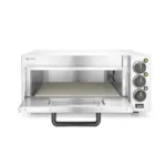Cuptorul pizza electric profesional oferă o ușă cu mâner ergonomic și fereastră de vizualizare pentru a urmări procesul de coacere fără a deschide ușa. Acesta este dotat cu un cronometru care poate fi setat până la 120 de minute, iar iluminarea interioară permite o vizibilitate excelentă a preparatelor. De asemenea, partea inferioară a camerei de coacere este echipată cu piatră de șamotă, care acumulează căldura pentru a obține preparate crocante, ceea ce face acest cuptor ideal pentru pizza și alte produse de patiserie.
