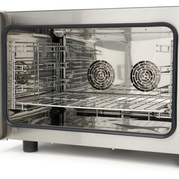 Echipamentul este dotat cu sistem de protecție la supraîncălzire, garantând un nivel înalt de siguranță în exploatare. Sistemul de ventilație avansat permite circulația optimă a aerului cald și a aburului între cele 4 tăvi, asigurând rezultate excelente indiferent de rețetă sau cantitate.