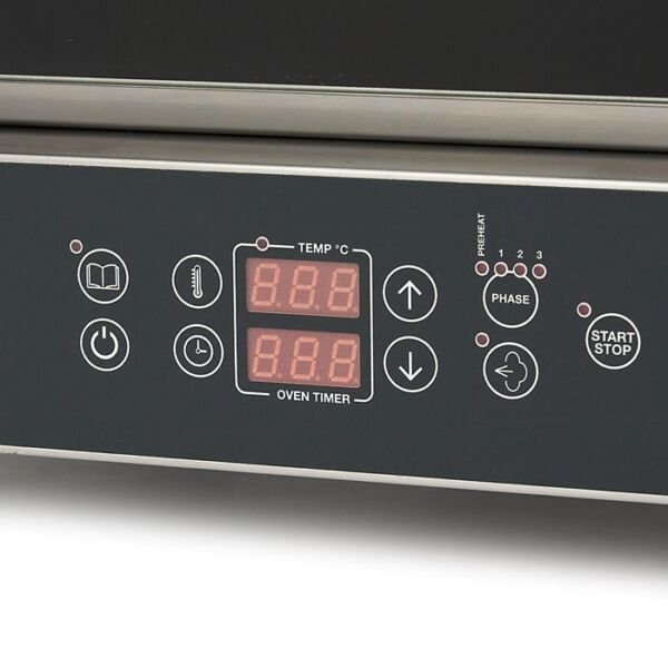 Echipat cu 99 de programe presetate, acest cuptor electric profesional permite configurarea personalizata a etapelor de gatire. Functia de memorie salveaza retetele preferate, reducand timpul de pregatire si crescand eficienta echipei din bucatarie. Ventilatorul cu revers asigura circulatia uniforma a aerului cald, ceea ce garanteaza o gatire constanta chiar si in conditii de incarcare maxima.