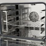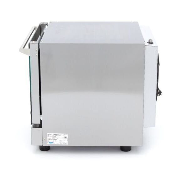 Fabricat din otel inoxidabil, cuptorul profesional este rezistent la coroziune, ușor de curățat și conceput pentru utilizare intensivă. Interiorul cu colțuri rotunjite și ușa cu geam termorezistent dubla facilitează igienizarea și asigură siguranța operatorilor în bucătăriile comerciale aglomerate.