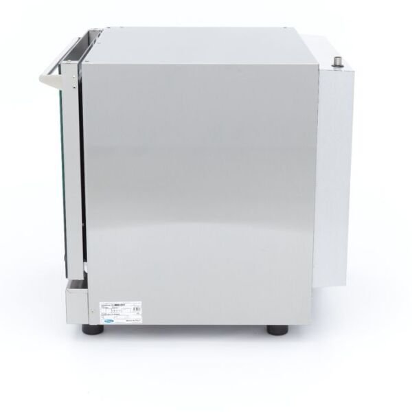 Fabricat integral din oțel inoxidabil, cuptorul asigură durabilitate și rezistență la uzură zilnică intensă. Geamul dublu atermic contribuie la menținerea temperaturii constante în interior, reducând pierderile de căldură și consumul energetic. Garnitura din silicon alimentar oferă o etanșare eficientă, iar sistemul de lumină interioară permite verificarea stării preparatelor fără a deschide ușa. Designul ergonomic, cu margini rotunjite și suprafețe ușor lavabile, simplifică igienizarea zilnică și respectă normele sanitare din domeniul horeca.