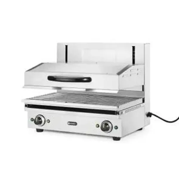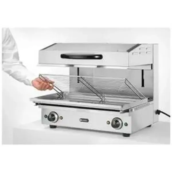 Cuptorul este echipat cu sistem de reglare a inaltimii pentru adaptarea in functie de grosimea alimentelor, precum si cu o tava de colectare a firimiturilor pentru mentinerea curateniei si igienei in timpul utilizarii. Dimensiunile generoase ale grilajului (590×350 mm) si carcasa robusta fac ca aceasta salamandra electrica sa fie alegerea ideala pentru spatiile de lucru cu trafic ridicat si cerinte ridicate de performanta.