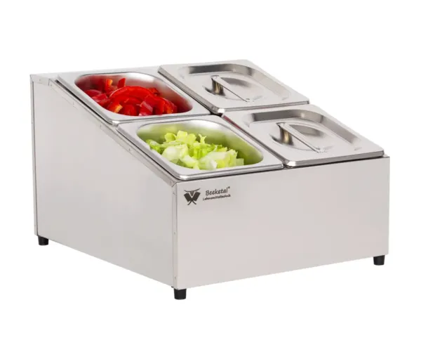 Fiecare cuvă GN 1/6 are o capacitate de 1,6 litri, ceea ce asigură o organizare excelentă a ingredientelor. Acest set de cuve este ideal pentru stocarea eficientă a diferitelor tipuri de ingrediente, permitându-le profesioniștilor să aibă acces rapid și ordonat la materialele de care au nevoie în procesele de preparare. - Design compact, adaptabil pentru spații diverse