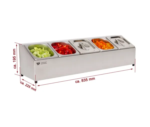 Cuve inox pentru ingrediente 5xGN 1/6, 825x225x215 mm