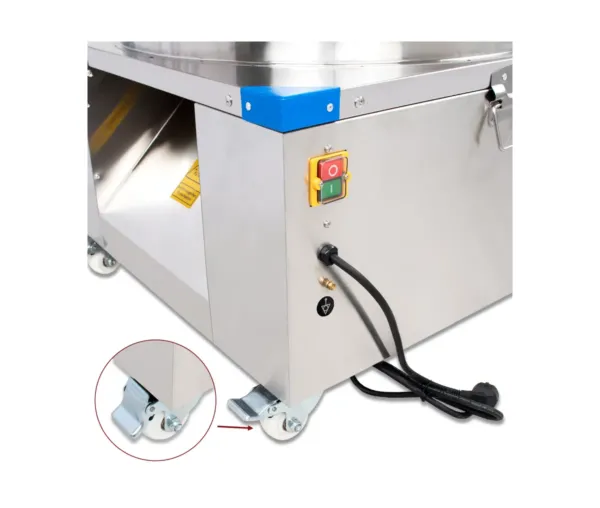 - Construcție robustă: Fabricat din otel inoxidabil, acest aparat este durabil și ușor de curățat, fiind ideal pentru utilizare în medii profesionale. Jgheabul de evacuare a deșeurilor facilitează îndepărtarea eficientă a penelor și a surplusului de apă, menținând curățenia locului de muncă.