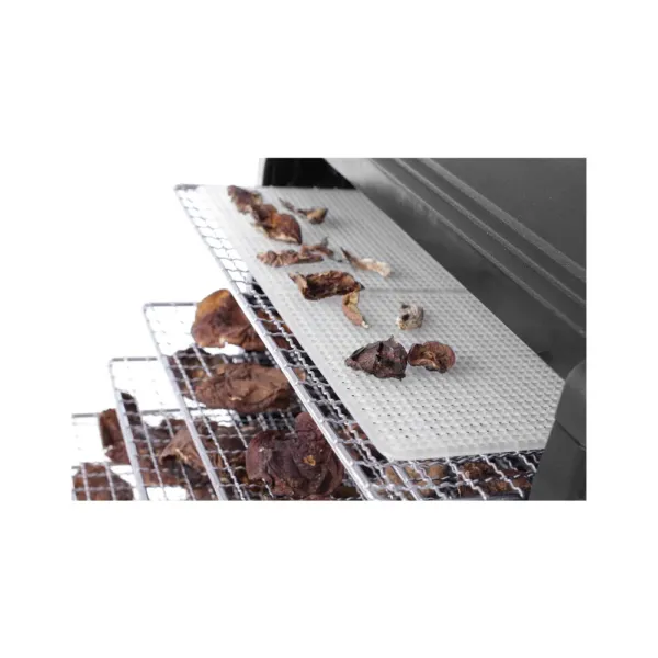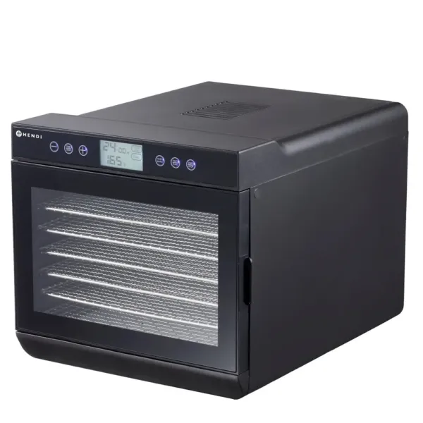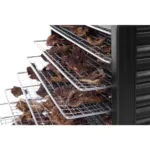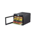 Cu o putere de 500W si o temperatura ajustabila intre 35°C si 70°C, acest aparat deshidratat fructe profesional ofera flexibilitatea necesara pentru diverse tipuri de produse – de la plante medicinale pana la carne si peste. Timerul digital permite setarea precisa a duratei de uscare, adaptata fiecarui aliment, iar suportul suplimentar integrat faciliteaza colectarea reziduurilor.